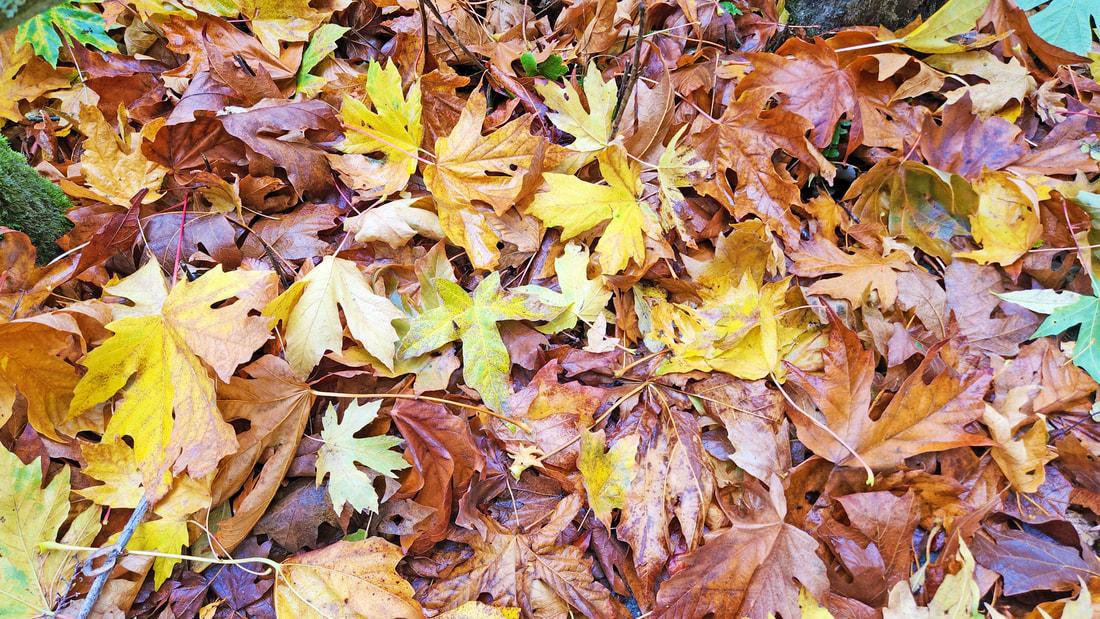 We walked through a collage of fallen golden leaves filling a bend of the trail as we headed home.