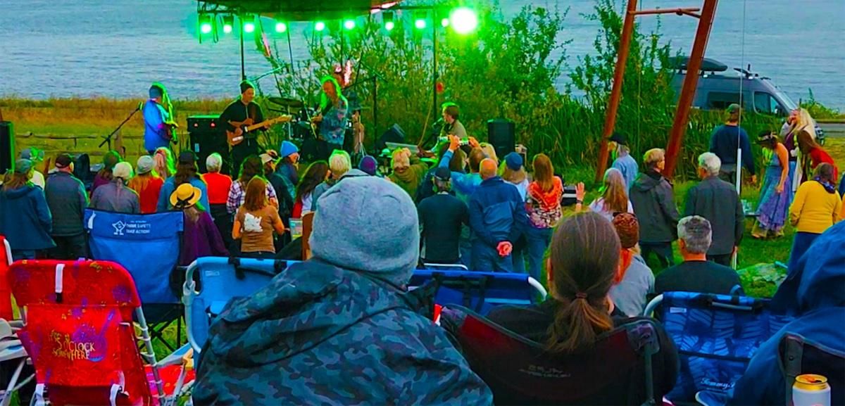 “To Peaches on Guemes!” we agreed. At the ferry dock, a throng of people dressed in rainbow colors, festive hats, floral dresses, and billowy pants mingled to get on. Lively conversations flowed. They were headed to see the Andy Coe Band at the Guemes store, an upbeat psychedelic jam band with guitar work reminiscent of Jerry Garcia.