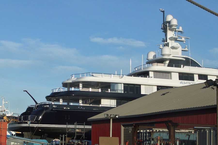 According to Super Yacht Times, the boat was originally moved to Dakota Creek in September for launching with a synchrolift, then towed back to Delta Marine to be fully outfitted.