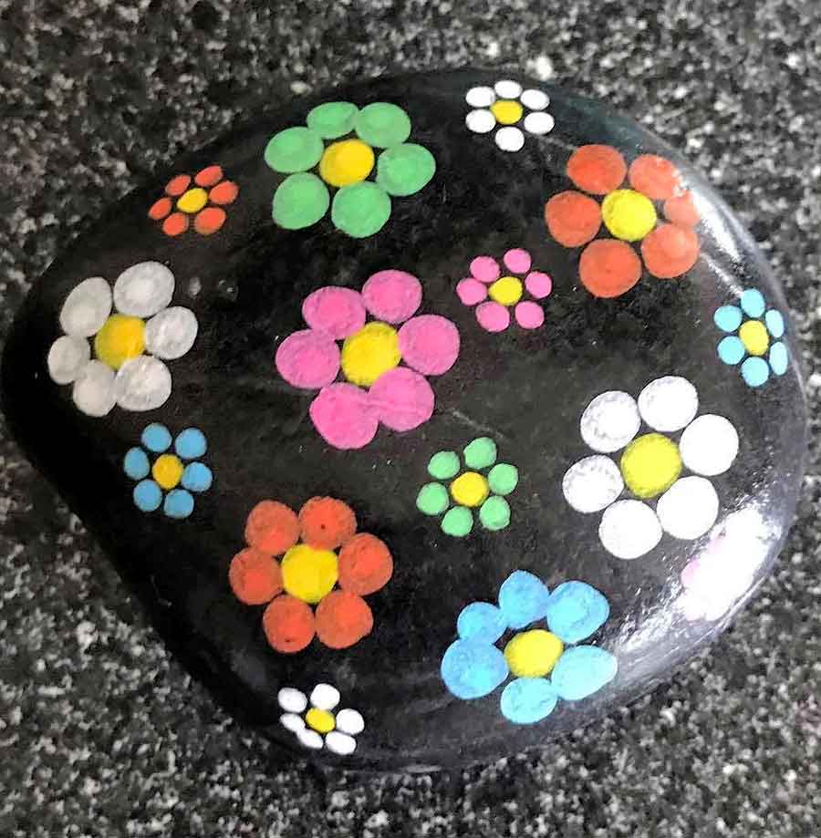 What do these rock charmers do? They paint rocks, hide rocks and find rocks. Then repeat. Some rocks are hidden in plain sight, while others are nestled into nooks and crannies of the great outdoors.