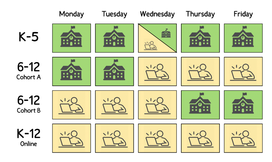 The district is continuing to develop a hybrid model that will prioritize in-person learning for our early learners, students who receive special services, and students who receive English Language services. We are also creating a full-time K-12 remote learning school.