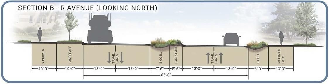 The R Avenue Long Term Improvement Project has six phases of pedestrian and multi-modal projects to address the failing intersections along the R Avenue corridor in addition to other improvements.