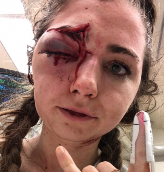 “I couldn’t really grasp how bad my injury was,” said Matthews, who sustained injuries including a broken nose, fractured facial bones and multiple lacerations on her face. “So much blood was pouring out. I was wearing a mask, and the whole mask was filling up with blood. I was trying to breathe through it. I kept telling myself, ‘Don’t stop breathing.’”